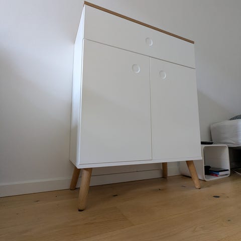 Vi sælger vores fine Dot Skænk (4 låger/4 skuffer) samt Dot entremøbel (2 låger/1 skuffe), da vi flytter.