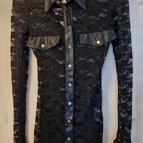 Brun kjole i læder med lommer i siderne. Kjolen er med korte ærmer og lynlås i siden. Brugt 2 gange. Lille i størrelse. Kjolens længde fra nakke og ned måler 88 cm. Hen over brystet 53 cm og talje 49 cm.