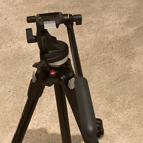 Ældre men fint fotostativ. Højde fra 59 cm til 146 cm. Vægt 1850 g.