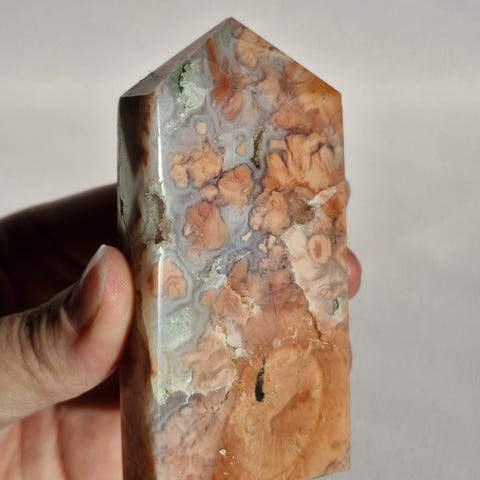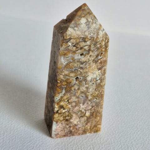 Sød lille agat obelisk med glimtende kvarts midte. Måler ca. 4,5cm og 48g.