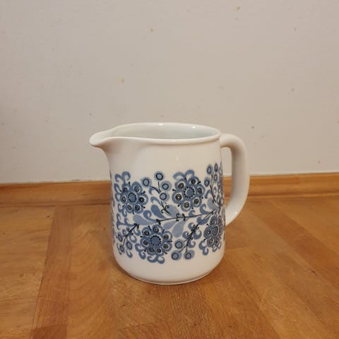 Finsk Arabia 1960/Mahonki - sælges samlet sukker- og flødekande sæt. Sættet består af en sukkerskål med låg og en flødekande, begge med smuk brun glasur med en rund, ribbet form. Materialet er keramik, og designet er velegnet til servering ved bordet.