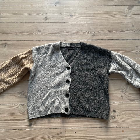 Fin striktrøje med lynlås til pige str. 80.