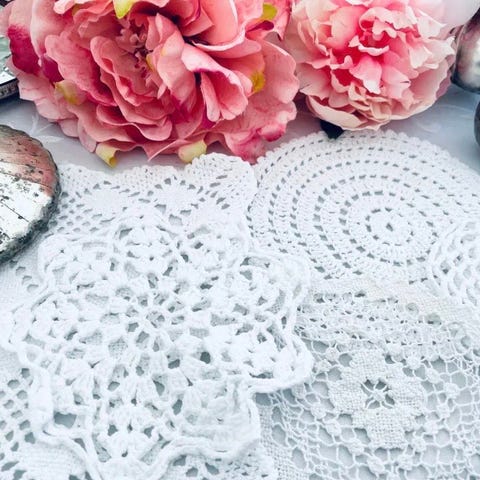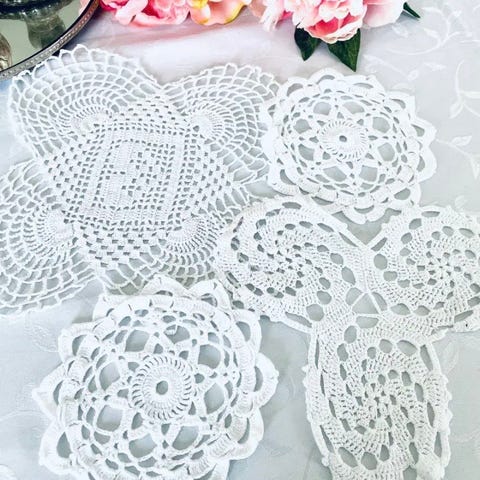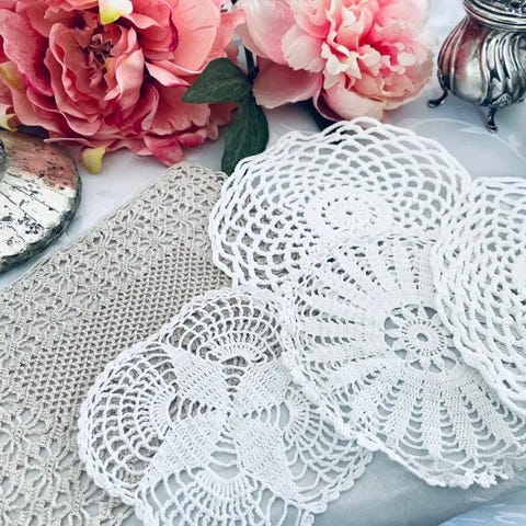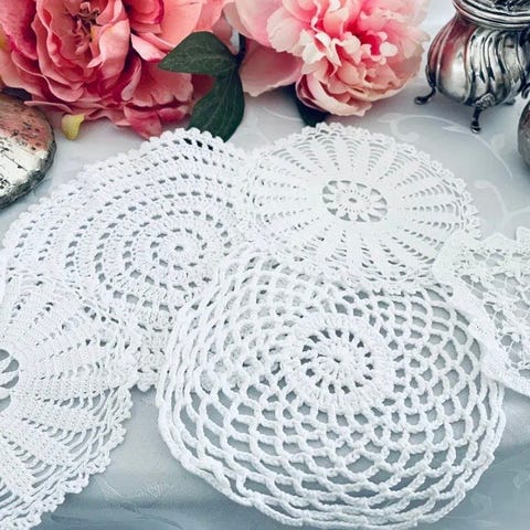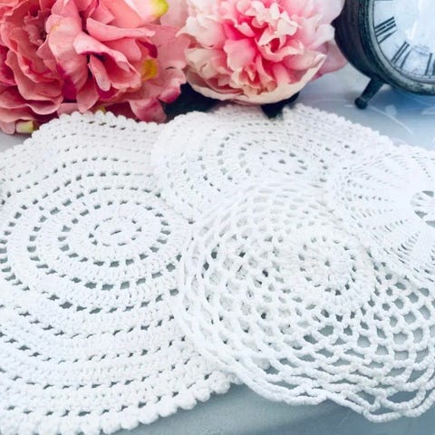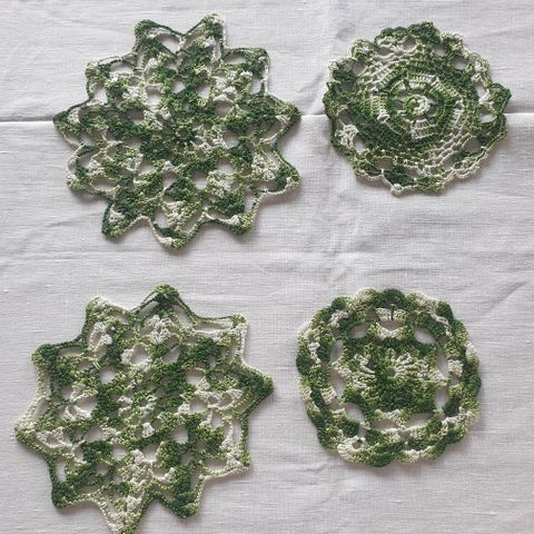2 stk. Flotte hjemmehæklede flaconer. Evt. til bordpynt. Dia. 17 cm