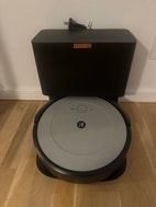 iRobot Roomba robotstøvsuger i grå farve. Enheden er designet til automatisk gulvrengøring og leveres med tilbehør som filter og klude. Velegnet til daglig rengøring af forskellige gulvtyper.