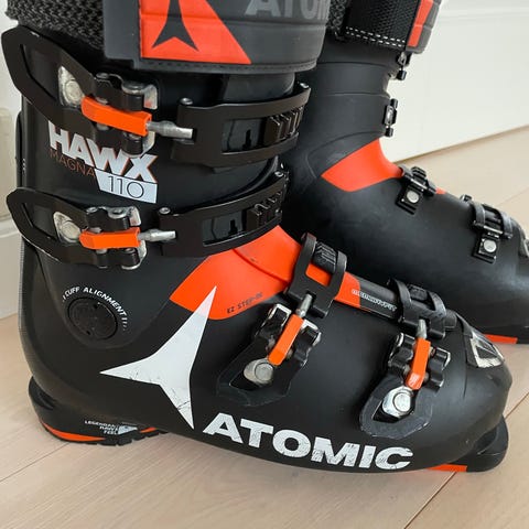 Atomic Hawx 120 skistøvler. Stive og hurtige støvler der desværre ikke passer mig længere. De er str 26.5 jeg bruger str 42 og de passer mig fint i længden. De har en gid og varm sidas inderstøvle, der tilpasser sig til din fod.