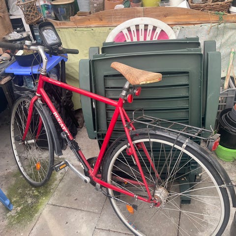 Sælger min lækre Motobecane herrecykel da jeg har anskaffet en MTB og ikke har behov og plads til den mere. Håber jeg finder en ny ejer der sætter pris på den. Cyklen er cirka 5 år gammel og står rigtig flot med baggagestativ inkluderet i prisen. Højre håndtag er slidt og kan eventuelt skiftes.