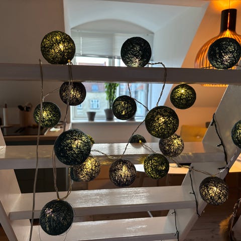 Udendørs lyskæde til en parasol fra Sirius. Model: Knirke. Fra nu lukket butik. Faktura haves.