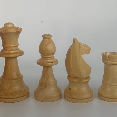 • Brikker til Skak/Halma: 4 sæt udskårne træbrikker i farverne: Rød, Grøn/Turkis, Orange/Gul og Sort. * (Bemærk: Disse bruges typisk til Halma, men kan have erstattet traditionelle skakbrikker i dette sæt.)