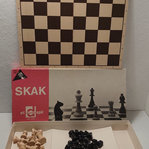 • Originale manualer/instruktionsark: Inkluderer hæftet "LÆREBOG SKAK" og instruktioner til "Mølle Spillet" samt andre vejledninger (dansk tekst).