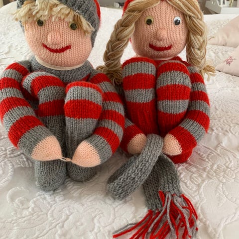 Julepige og Juledreng med fleksibel nissehue som kan bøjes på forskellige måder. Fra Speedtsberg. Fra nu lukket butik. Faktura haves. Sælges Samlet.