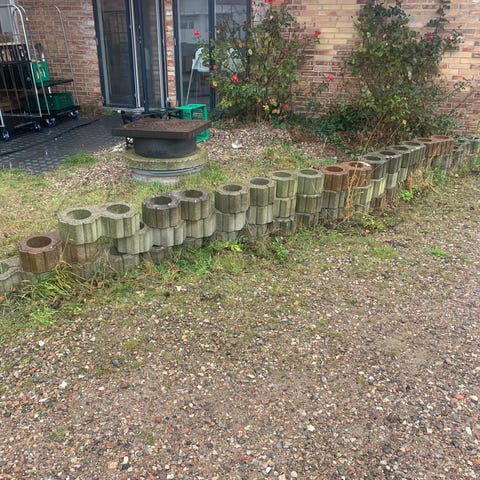 92 lysegrå sandsten til belægning eller bedkant 20x10x5 cm