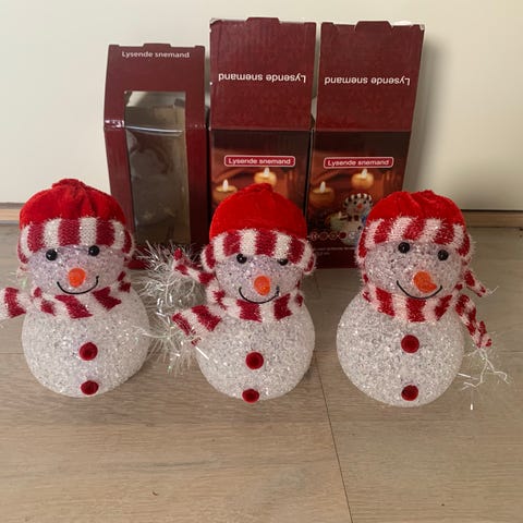 4 skønne snemænd julepynt, 4 skønne retro snemænd sælges samlet og sendes for kr. 38