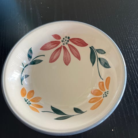 Antikke Staffordshire 'Wild Rose' fade, tallerkener og skåle.