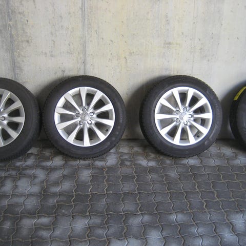 Audi Alufælg. Et dæk er punkteret (lapning koster 400 kr).