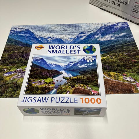 Londji My Little World puslespil med 1000 brikker. Motiv viser en detaljeret japansk landskabsrockscene med huse og natur.