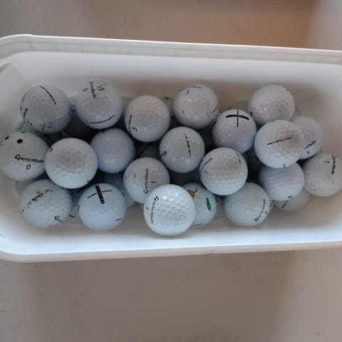 Taylormade golfbolde i blandede farver, brugt til golfspil. Indeholder flere bolde i farverne hvid, gul og pink. Egnet til golfentusiaster og til træning eller spil på golfbanen.