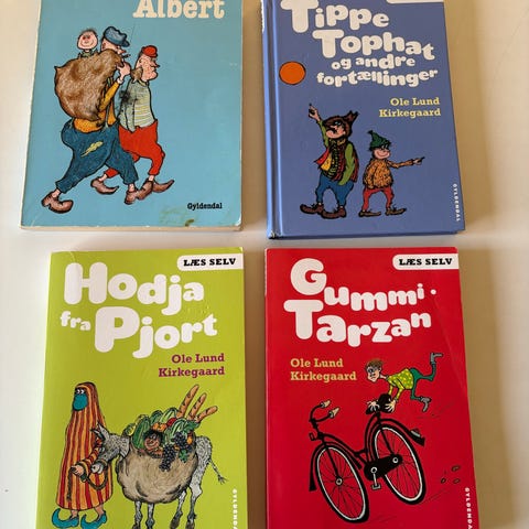 Ole Lund Kirkegaard: Otto er et næsehorn / Albert / Lille Virgil /Gummi Tarzan/ Frode- og de andre rødder/ Orla Frø-Snapper Samling af 6 stk. illustrerede børnebøger udgivet på Gyldendal. Bøgerne er klassiske danske fortællinger for børn med tegninger på omslag og indeni. Velegnet til højtlæsning eller selvlæsning for børn i skolealderen.