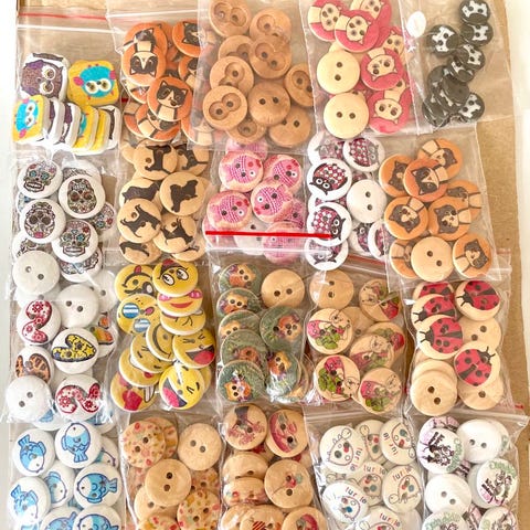 43 små knapper formet som blomster