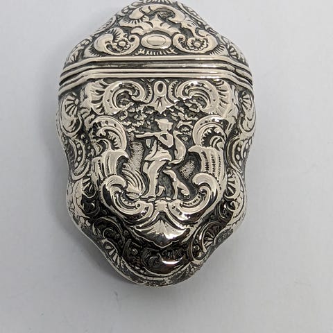 Hovedvandsæg, Sølv, 300 år gl., Antik sønderjysk hovedvandsæg i sølv med 6 røde sten. Måler 8,5 cm. Meget smuk udført med indvendig forgyldning. Ægget er købt på auktion i sin tid og auktionshuset har lavet sølvtest på det.