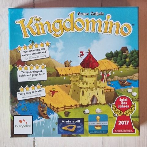 Kingdomino brætspil med farverigt slot- og landskabstema. Spillet indeholder brikker med forskellige landskabstyper og er designet til flere spillere. Egnet til familier og spilentusiaster. Komplet. Sender ikke for køb under 200 kr.