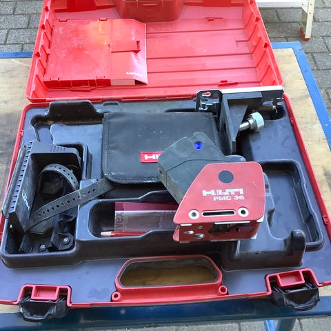 Hilti PD-I laserafstandsmåler med kompakt design og medfølgende sort taske. Enheden er egnet til præcise afstandsmålinger i forskellige bygge- og installationsopgaver.