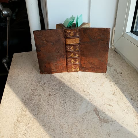 Moderne grønt halvlæderbind med afskalning på ryggen, men generelt i god stand. Forsatsblade medfølger.