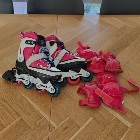 Fede rulleskøjter sælges i flot farve. Oplagt begynder sæt