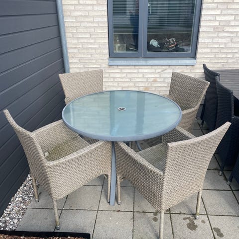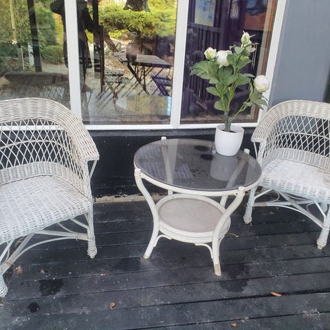 De skal lige have en klud og måske hynderne en vask, men ingen skader lidt slid på nakken af den ene stol.