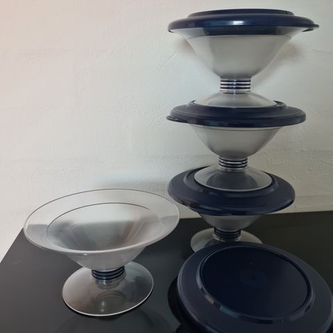 Dessert/trifli/cocktailglas, Tupperware, Tupperware Exclusive høje dessert- /trifli- / cocktailglas med låg. 8 stk. haves. Sælges samlet.