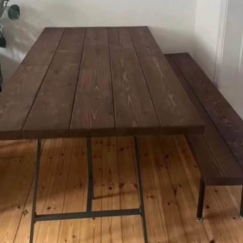 Bordet står ellers rigtig fint, men er brugt dog kan det nemt lige slibes lidt og olieres og så står det som nyt.