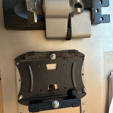 Solidt TV ophæng. En 42” skærm kan drejes så den vinkles 90 grader fra væggen.
