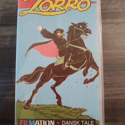 Rigtig go' tegnefilm med Zorro fra 80erne. Den er meget sjælden, og jeg har kun set den til salg én gang før, og det var hvor jeg selv købte den. Sælges da min VHS maskine ikke virker længere.