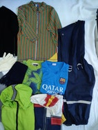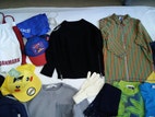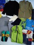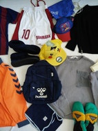 Hummel rygsæk (brugt 2 gange), striktrøjer (1 uld, 1 bomuld), fodboldtrøjer, 2 par vanter/luffer (ubrugte), caps (Spiderman og ubrugt Pokemon / Pikachu cap), cardigan med lynlås (ubrugt), 2 jakker, Didriksons regnbukser med seler, T-shirt (ubrugt), Hummel windbreaker (windbreaker er str. 128), halstørklæde, Adidas sportspose, shorts, vinterhjemmesko med skridhæmmende såler.
