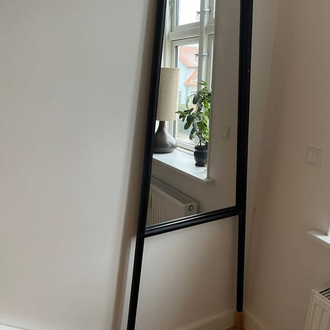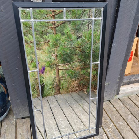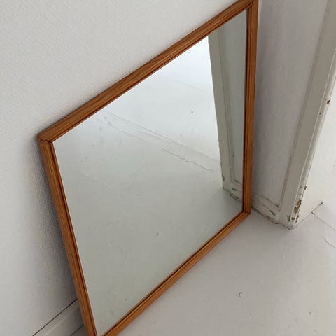 Blyindfattet spejl med egetræsramme fra røgfrit hjem.