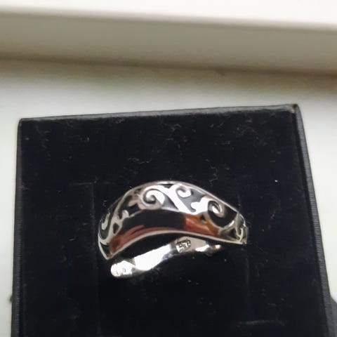 Smuk ring udført i oxyderet Sterlingsølv i et moderne design.