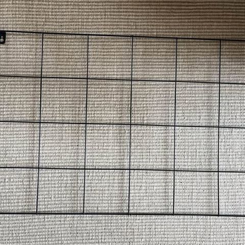 Fin lille opslagstavle i sort metalgitter med 6 små træklemmer med lilla sommerfugle :)
