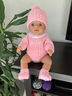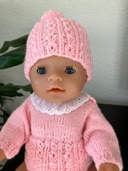 Sælger denne baby Born dukke i lyserødt hjemmestrikkede tøj, hun har blå lukke øjne.