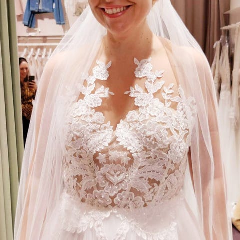 Ny brudekjole med langt slør. Kun prøvet på