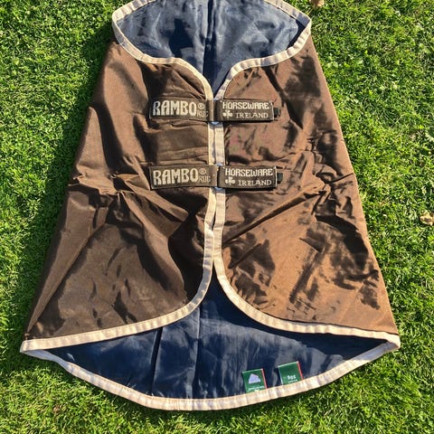 Dækken, Hals By Weber, Ny hals til By Weber dækken. Samme system m velcro som Rambo dækkener. Navy (billed snyder m farven) brugt 5 dage, nyvasket. Passer til et 155 dækken, men ret lille i størrelsen. Længde 95 cm (nakke-manke) omkreds 104 cm (målt mellem velcro’er)