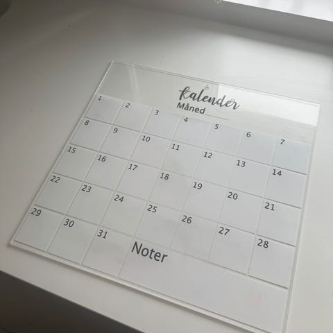 Kalender på plaxiplade til at få overblik over familiens planer