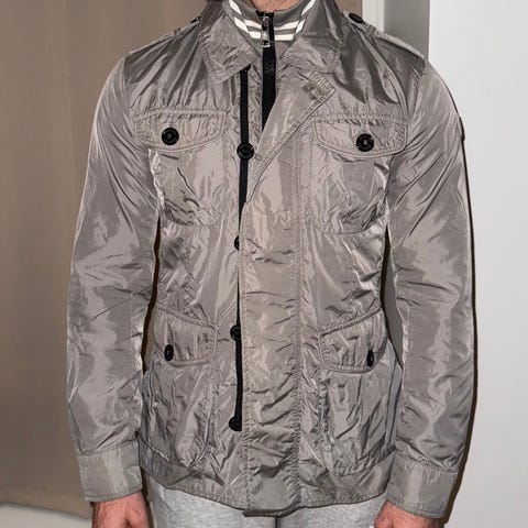 Super fed og klassisk Moncler herrejakke, med logo på armen. Flot og velholdt stand.