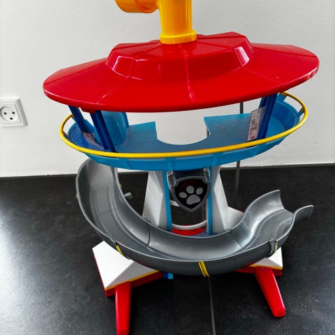 Paw Patrol legetårn med flere rutsjebaner, kikkert og forskellige aktivitetsområder. Legetårnet er fremstillet i plastik i farverne rød, blå, gul og grå. Designet til børn og egnet til leg med Paw Patrol figurer.