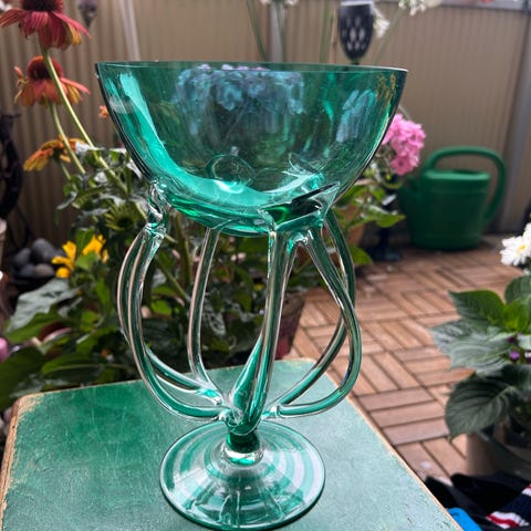 Krosno jagt glaspokal med ætset motiv af kronhjort, træ og græs.