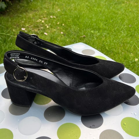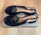 Flotte festsko i pæn stand brugt til en enkelt fest. Bunden af skoene bærer præg af at have gået gennem Tivoli i regnvejret den dag, men skyldes ikke omfattende brug.