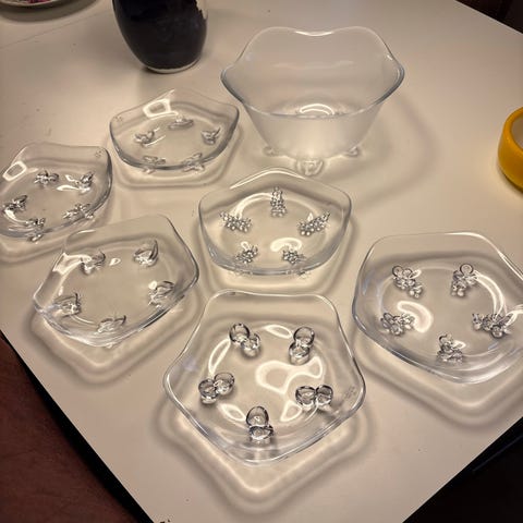 10 Isasietter desserttallerkner i klar glas med blomstermotiv