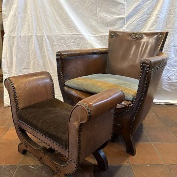 Otto Schulz lænestol af patineret cognac farvet sømbeslået læder. Ben af bejdset bøg. H. 82/38 B. 65 D. 70 cm.