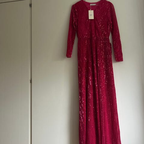 Lang kjole i bordeaux / bourgogne brugt 1 gang.
