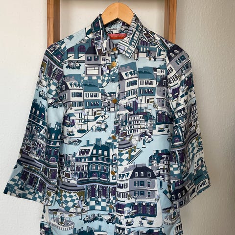 Designer skjorte, str 34. Brun og hvid ternet. Så smuk kvalitet, næsten ikke brugt