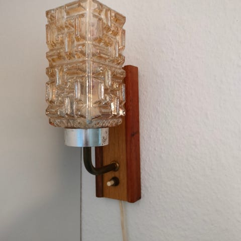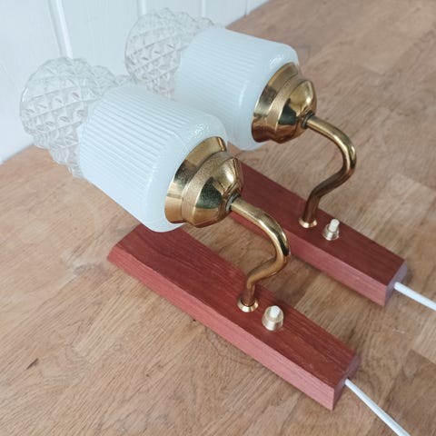 Søgeord: væglampe / opalglas / glaslampe / teak / teaktræ / træ / tre ens / række / retro / retrovæglampe / retrolampe / væghængt lampe / oplight / uplight / skærm / glasskærm / orange / farvet glas / 90'er /