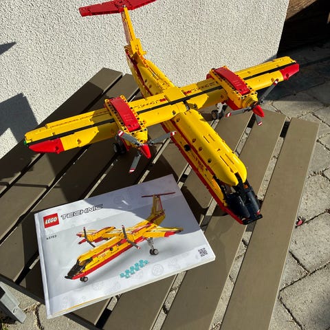 LEGO Technic Airport Rescue Vehicle. This model is a detailed construction set representing an airport rescue truck. It features realistic design elements, including extendable arms and wheels suitable for various terrains. The set includes an instruction manual for assembly.